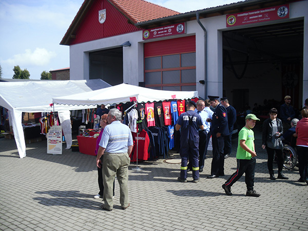 Obok remizy ustawiono różne stoiska, przy których można było zobaczyć wyposażenie Straży Pożarnej. Dla dzieci był zamek do skakania oraz przejażdżki