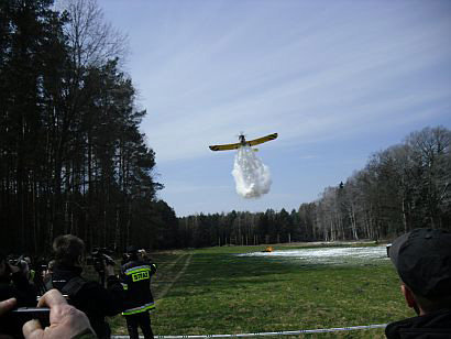 bränden vorgestellt und erläutert. Vertreter von Firmen stellten ihre neusten Löschmittel in kurzen Präsentationen vor. Am zweiten Tag der Konferenz wurde eine praktische Übung zum Thema "Waldbrand und seine Bekämpfung" in der Oberförsterei Klinisko durchgeführt. Es wurde die Tätigkeit eines Einsatzstabes, des Aufbaus einer Löschwasserversorgung über lange Strecken dargestellt. Höhepunkt war der Einsatz von 2 Löschflugzeugen zur Bekämpfung eines Übungsfeuers. Den Teilnehmern wurden an diesen 2 Tagen interessante Informationen und Erfahrungen zum Thema "Bekämpfung von Waldbränden" und "Schutz der Wälder vor Bränden" vermittelt.Neben den Vertretern des THW nahm der Fachberater Polen des Landesfeuerwehrverbandes Brandenburg, Hans-Jürgen Ziele, an der Konferenz teil.