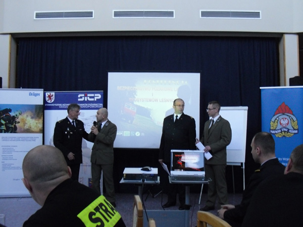 Eine Konferenz unter dem Thema "Schutz der Wälder und seiner Ökosysteme vor Waldbränden" wurde vom 17.-18.04.2012 in Szczecin (Stettin) durchgeführt. An der Veranstaltung haben ca. 150 Teilnehmer aus Polen, Spanien und Deutschland teilgenommen. Referenten stellten in interessanten Vorträge ihre Sicht zur Verhinderung bzw. Bekämpfung von Waldbränden dar. Beispielswiese stellte ein Vertreter der Staatlichen Feuerwehr aus der Wojewodschaft Lebuser seine Erfahrungen aus dem Einsatz zur Bekämpfung von Waldbränden in Russland vor, spanische Referenten zeigten die Nutzung sowie den Einsatz von Löschflugzeugen zum Löschen von Waldbränden und Vertreter des THW aus dem Landkreis Ostprignitz-Ruppin erläuterten die Löschwasserversorgung über lange Strecken. Durch Verteter der Staatlichen Forstwirtschaft Polens wurden statistische Werte zu Wald-