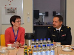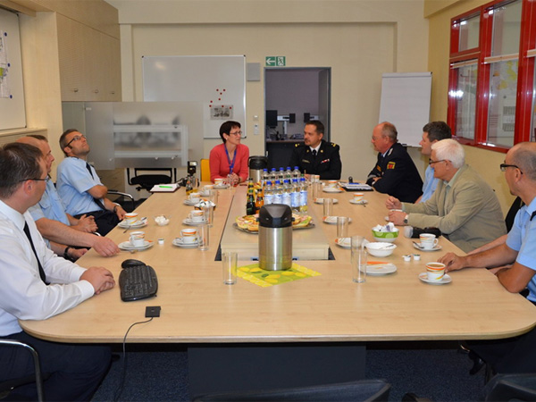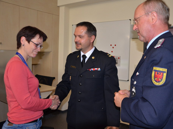 wurden die polnischen und deutschen Kollegen über bestehende Unterschiede in der Arbeit der Leitstellen informiert. Zum Abschluss machten sich die polnischen Kollegen im Lageraum live mit der Arbeit der eingesetzten Kollegen bekannt. So wurde u.a. der Austausch von Informationen zwischen der Leitstelle Eberswalde und der Wojewodschaftskommandantur Szczecin per Fax getestet. Durch den Kreiskommandanten Jacek Rudzinski wurde eine Einladung nach Polen ausgesprochen. Begleitet wurde der Besuch durch den Fachberater Polen des Landesfeuerwehrverbandes Brandenburg, Hans-Jürgen Ziele, der den Besuch organisiert hatte.