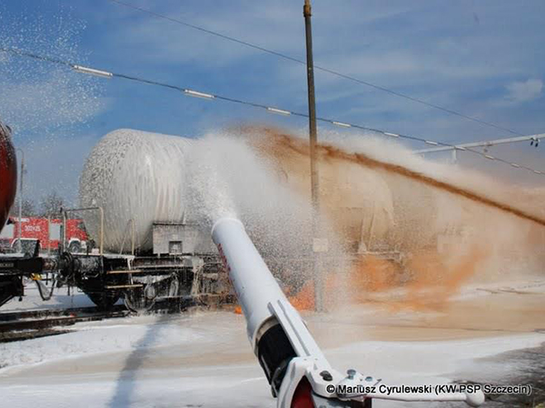 pianowych zasilanych z pompowni pożarowej. Gaszenie wspomaga PSP przy wykorzystaniu działka wysokiej wydajności i dwóch ciężkich samochodów gaśniczych.
