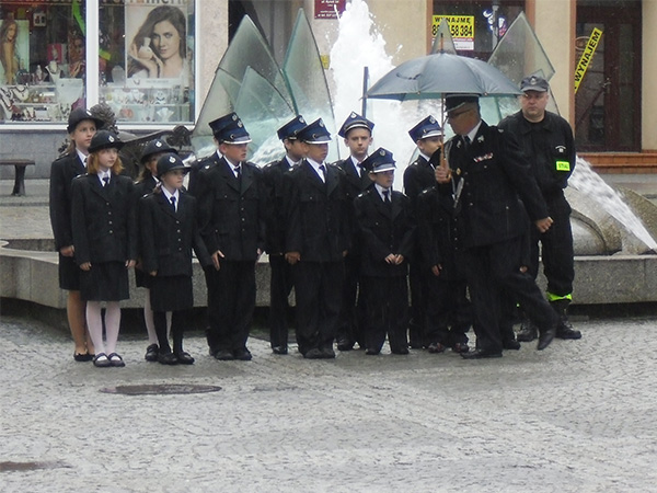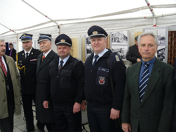 mit dem Kommandanten der Kreiskommandantur Zary der Staatlichen Feuerwehr der Feuerwehrleuten aus Zary Beförderungen und Auszeichnungen.