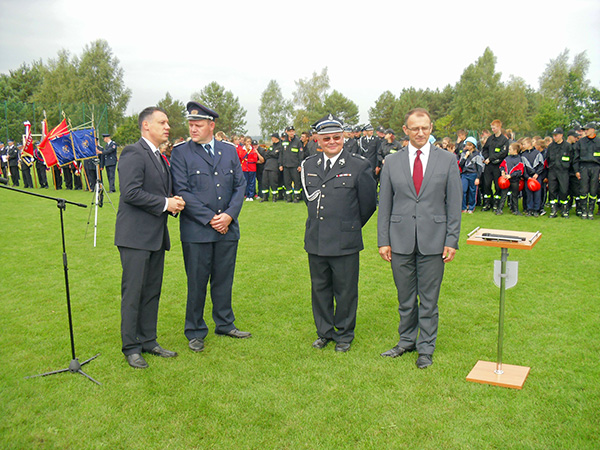 Kameraden aus den Löschzügen der Stadt und Gemeinde Krosno Odrzanskie und ihre deutschen Partner angetreten. Durch den Gemeindepfarrer