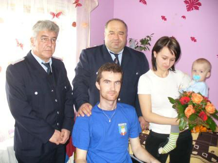 W dn. 23.12.2010 koledzy Uwe Henning i Thomas Prehn z plutonu gaśniczego 3 – Heinersdorf Ochotniczej Straży Pożarnej w Schwedt n.Odrą pojechali z wizytą do Chojny, aby odwiedzić ciężko rannego podczas akcji w październiku polskiego kolegę, członka Ochotniczej Straży Pożarnej w Chojnie – Mirosława Jeremicza, który od wczoraj jest już w domu. Podczas akcji ratowniczej stracił nogę. Lekarzom ze Szczecina nie udało się niestety uratować również drugiej nogi. Teraz 29-latek musi poruszać się na wózku inwalidzkim. Dowódca plutonu gaśniczego Uwe Henning przekazał mu w obecności żony i małej córeczki pieniądze zebrane w ubiegły piątek podczas świątecznego spotkania przez strażaków z Heinerdorf. Thomas Prehn wręczył żonie Mirosława Jeremicza bukiet kwiatów. Burmistrz Chojny, Adam Fedorowicz, zastępca burmistrza Wojciech Długoborski oraz