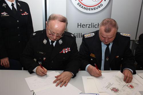 Dycha (Verband der Freiwilligen Feuerwehr Wojewodschaft Westpommern) und LFV-Präsident Werner-Siegwart Schippel stärkt auch in Zukunft die grenzüberschreitende Zusammenarbeit der Feuerwehren und Feuerwehrverbände beider Länder. Wie wichtig diese Zusammenarbeit sei, habe sich in den vergangenen Jahren insbesondere bei der Bewältigung der verschiedenen Hochwasserlagen gezeigt. Außerdem sei eine moderne, an den heutigen vielfältigen Anforderungen ausgerichtete Ausbildung für Einsatz- und Führungskräfte der Feuerwehren unabdingbar zur professionellen Bewältigung der immer vielfältiger werdenden Gefahrenszenarien.